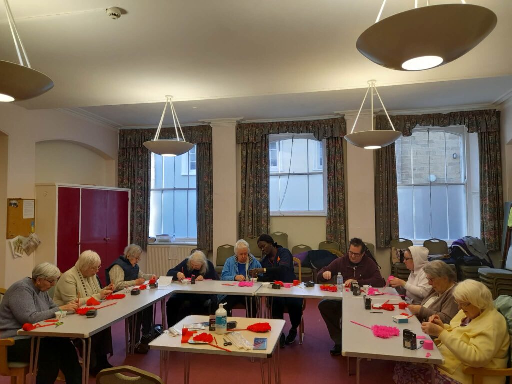 We return to the Parlour for the afternoon activities gathering at about 1.45pm to begin at 2pm. This may be, board games, quizzes, storytelling, poetry, chocolate bingo, various crafts, music, ping pong games and more, having some really interesting conversations along the way. Tea and coffee are served at about 3pm ending the day at 3.30pm.